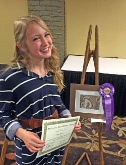 Only one-quarter of the work displayed receives ribbons, so the students took great pride in receiving this recognition from the judges. Two students received distinguished honors by having their work selected to be displayed in Capital Building in Cheyenne over the summer.