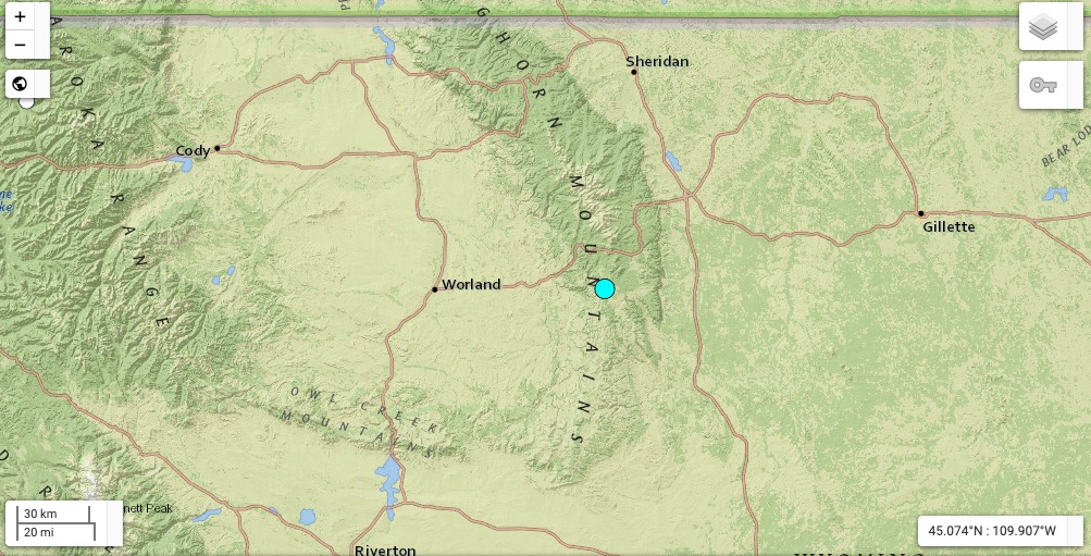 CASPER — A magnitude 3.2 earthquake was recorded by the United States Geological Survey Sunday morning near Meadowlark Lake at the southern edge of the Big Horn Mountains.