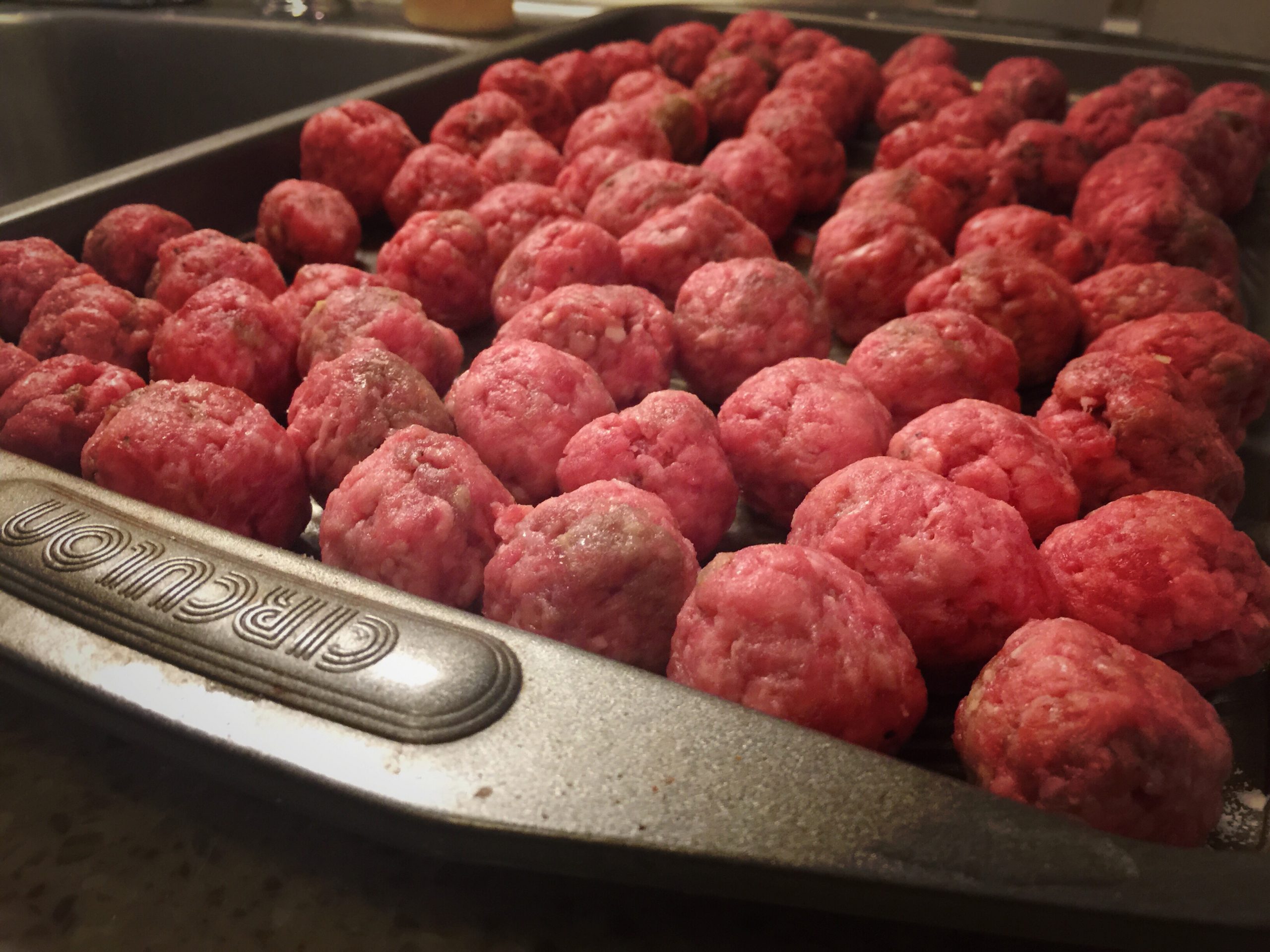 Next, shape the meatballs. They should be firmly put together and fit in the small cup of your hand.
