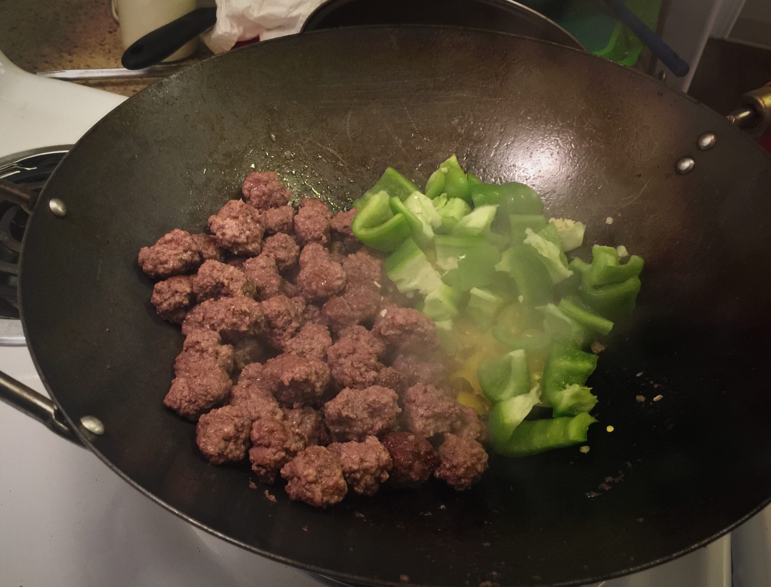 Heat up the pan. If you are using a wok, use a moderate amount of oil since they are designed to cook with low amounts of oil. Make sure the oil has a slight amount of steam coming off it. If you are using a pan, make sure to get the highest heat possible before cooking so you don’t have your meatballs falling apart.