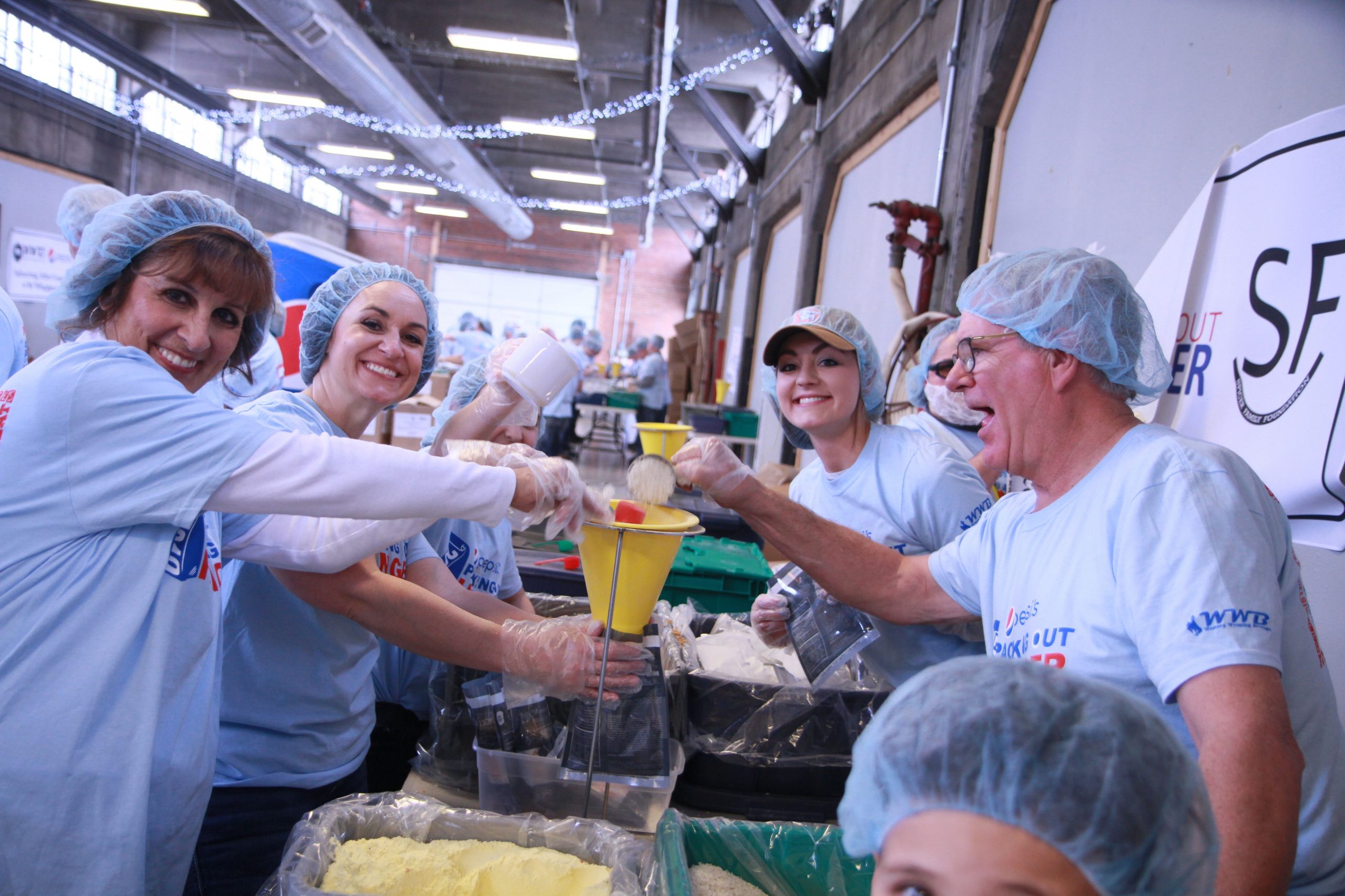 In just under two hours the WWB team and a group of 180 volunteers were able to pack a whopping 55, 299 meals to be donated to local food banks.