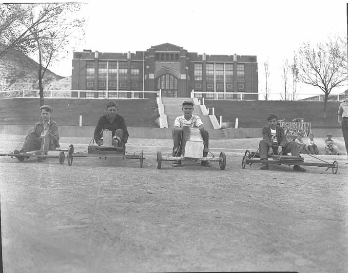 Soapbox racers at Washington School in 1950. Sweetwater County Historical Museum photo