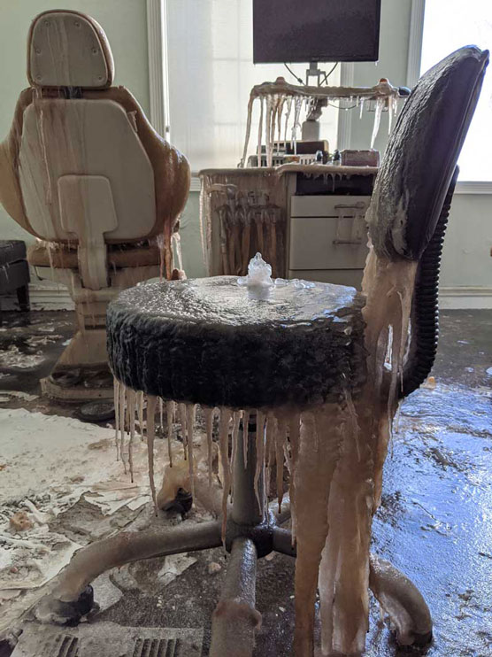 Smoke, water, and ice damage in the Silcox Orthodontics office. Photo contributed by Dr. Jon Silcox