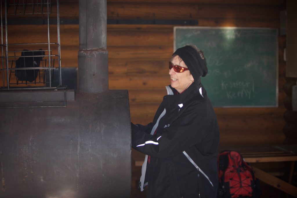 Blind Bull Safety Shelter is equipped with a wood-burning stove, chopped wood, emergency supplies, and a satellite phone.