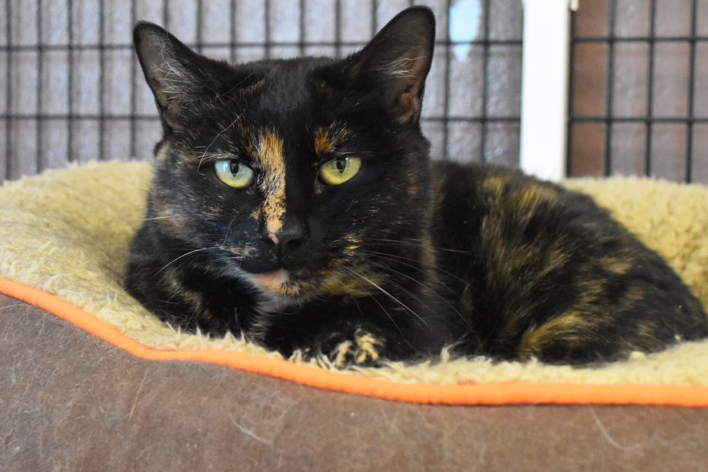Hello! My name is Hershey! I’m a six-year-old female short hair/Manx cat. Living up to my Manx ancestry, I don’t have much of a tail. It’s my quirk! I’m a very loving cat who gets along great with people, dogs, and other cats. I’m due for my rabies shot but the rest of my shots are up to date, and I’m spayed and litter box-trained. If you’re looking for a friendly kitty who has a lot of love to give, I’m your girl!
