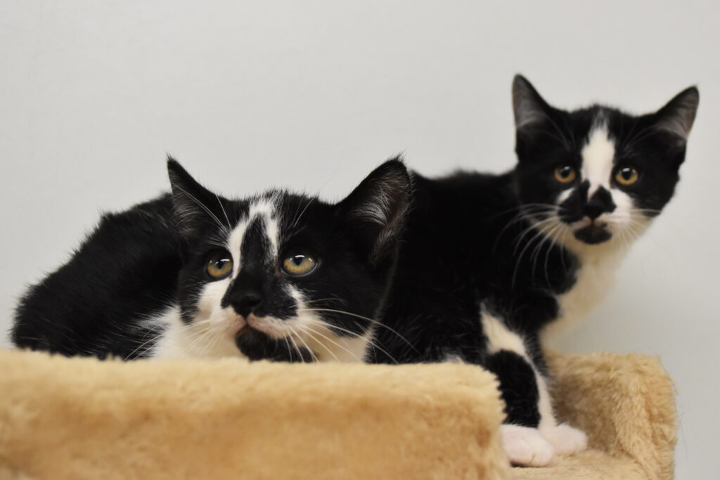 Howdy! We’re Bessy (left) and Clarabelle (right), two 14-week-old female kittens. We have these udder-ly adorable cow-like markings, which earned us our names. We would both love to find our forever homes to mooooove into! We’re cute, sweet, and absolutely legen-dairy! We can’t wait to meet you!