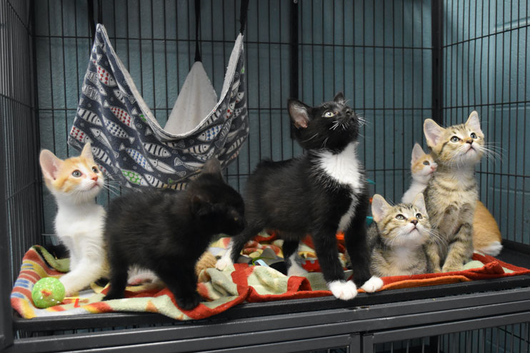 Hey! We’re a group of kittens who are so excited to find our forever homes! We’re all around eight weeks old, though some of us are strays so we don’t know for sure how old we are. Whether you’re looking for a male or female cat, or a playful or more relaxed pal, one of us are sure to be exactly what you want! Two of us have bobbed tails, which we think makes us quite unique and quirky. Some of us are on the spunkier side, while some of us are downright sweet. Come meet us! We’ll steal your heart at first sight!