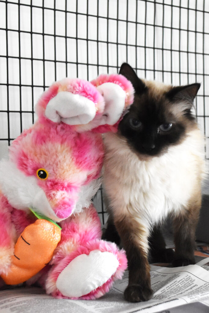 Hello! I’m Sierra, an adult female Siamese cat. I came into the shelter after my previous owner left me and my housemate behind after they moved. Now I’m here waiting to find my new forever home! I’m a sweet girl who is super chill and friendly. I get along with other cats, especially my friend Shadow who you’ll meet below. Since I came in as a stray, it’s unknown if I’m spayed. However, if I’m not, I will come with a coupon to help with the cost. I’m a beautiful girl with these sweet blue eyes, and I can’t wait to get to know you!