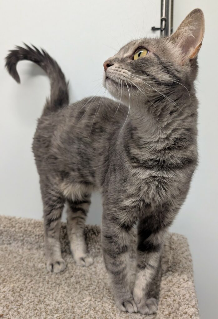 My name is Cassey, and I’m a young adult cat who’s seen a bit of life already. I ended up at the shelter as a stray, and for a while, I was so worried because I’d been separated from my kittens. Thankfully, the humans here are pretty good, and they helped me find my babies again. Now that my kittens are grown and off to their own homes, I’m hoping it’s my turn to find a forever family. I’m not really one for sharing my space with other cats or dogs; I prefer to be the queen of the castle. But if you’re looking for a loving companion who’s happy with just me, I promise to bring you lots of purrs and snuggles.