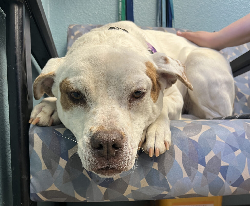 Hello there, I’m Daisy! I about three years old and just had a litter of puppies. My time raising puppies is done and it’s mine turn for someone to baby me. I get along well with kids and other dogs. My happy, gentle personality make me an easy addition to any home. I’m ready to trade in my mama duties for cozy nights and belly rubs.