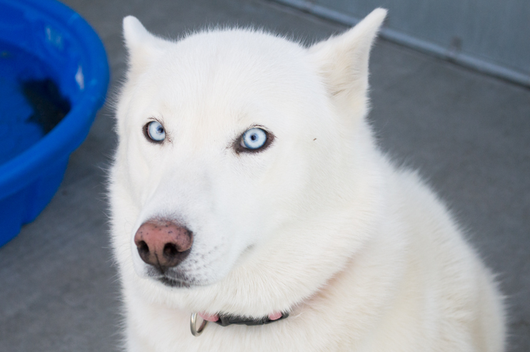 Hi! I’m Scarlett. I’m a white husky and I’m about 3-years-old. I’m house trained and can use a dog door. I’m great with kids- in fact I love them! I’m beautiful, just look at my piercing blue eyes. Sweet and calm are good words to describe me. I would love to be the newest addition to your family!