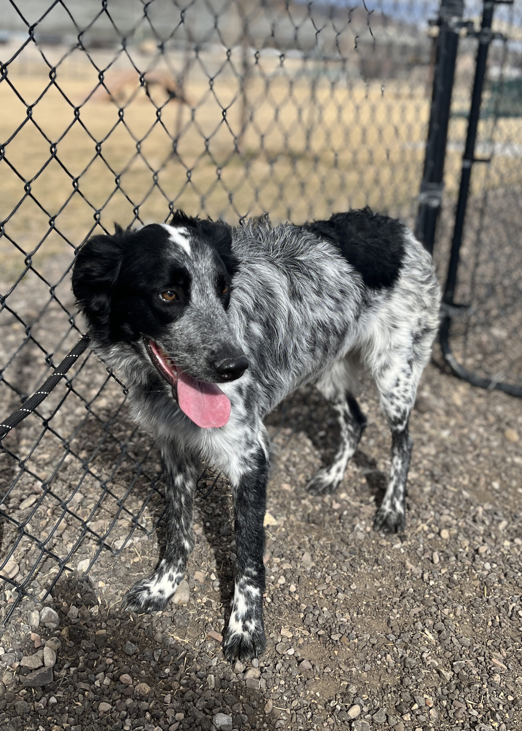 Hello there, my name is Oreo and I’m a Australian Cattle Dog mix. I’m a little shy of humans at first so I’m looking for someone to help build my confidence. Once I’m comfortable around people, I can get a little excited and accidentally knock things over. I came from a home with a cat in it and did well with him. I do not get along with chickens at all, so I need a home with no chickens.