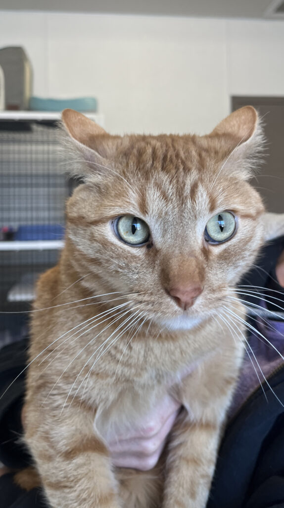 Hello there, my name is Sunshine and I radiate happiness. My old family named me well because where I go I light up the room. I love dogs and kids, but I don’t like other cats because they steal my spotlight.