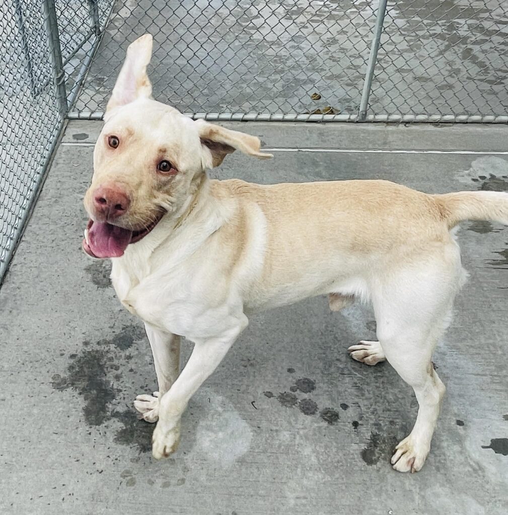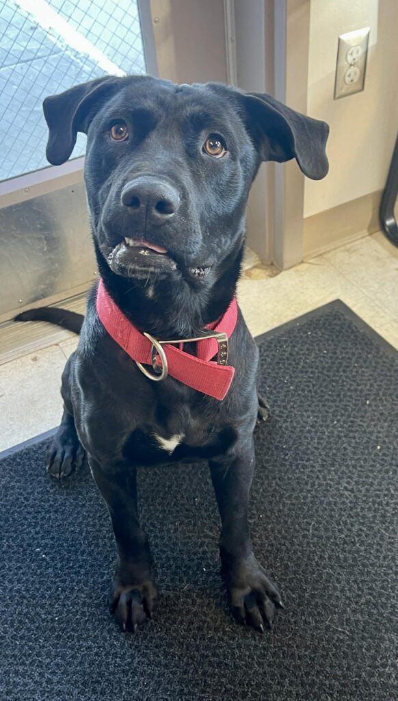 Hi there, my name is Moose and I’m a 1.4 year old Labrador Retriever. I came to the shelter with my house mate Koda, and we were surrendered because our owner could not care for us. We were left alone for days at a time, so that’s pretty much all I know. I need training and exercise because I am still a puppy and very hyper. I do fine around cats and love playing fetch, but not to much else is known about me.