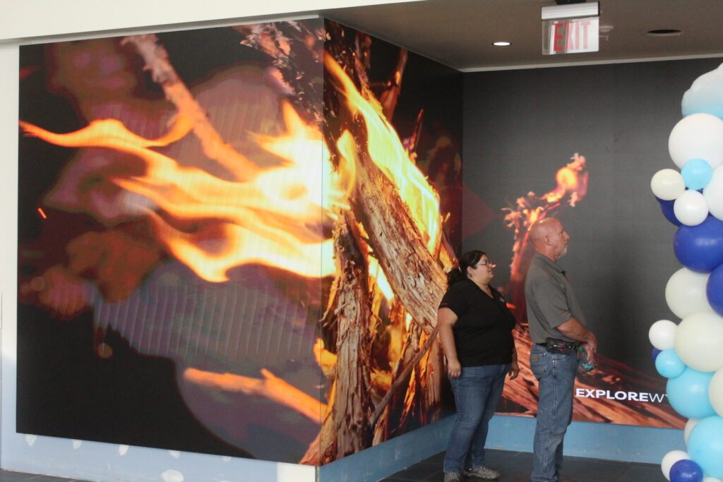 The screens are made up of 1,100 panels that display images in 4K. Ironshell said there are thousands of parts and pieces that had to be stitched together for the display to operate. A second display will be installed near the baggage carousel in a few weeks. Airport Director Devon Brubaker said the terminal has been closed for construction almost exactly a year, with everything having been moved out Aug. 22, 2024. That day, which Brubaker described as a “a big day” in an interview with SweetwaterNOW last year, will be eclipsed when the terminal’s grand opening ceremony takes place Sept. 12 at 2 p.m.