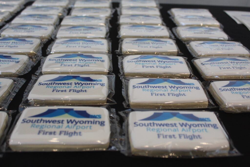 A small celebration highlighted the terminal’s soft opening, with commemorative cookies and some airport swag available to those taking the first flight out. The first flight from the airport’s new terminal was United Airlines Flight 5114, which received a water salute by two of the airport’s fire trucks as it taxied onto the runway.