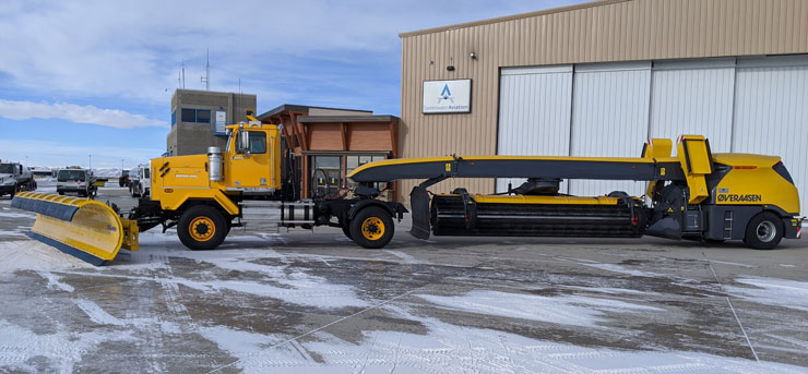 “Prior to the delivery of this equipment, it would take us 1 to 2 hours to clear snow off the main portion of the runway followed by many hours of clean-up along the edges,” Brubaker said. “This new equipment allows us to clear the airportâs 10,000 foot main runway in under 30 minutes edge to edge.”