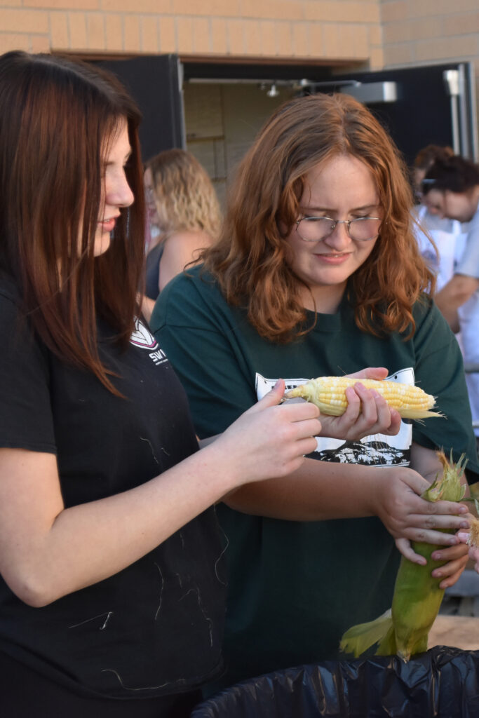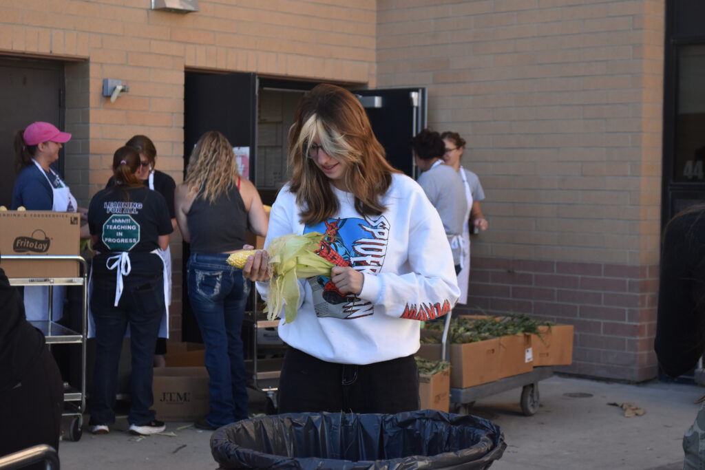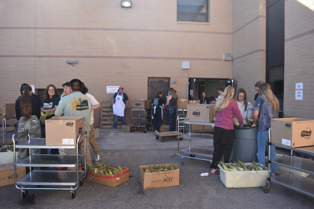 As the corn is fresh from Riverton, all of it had to be shucked Tuesday afternoon to prepare for cooking Wednesday. The Nutrition Services Department brought in Green River High School’s Future Farmers of America chapter to help shuck the corn.
