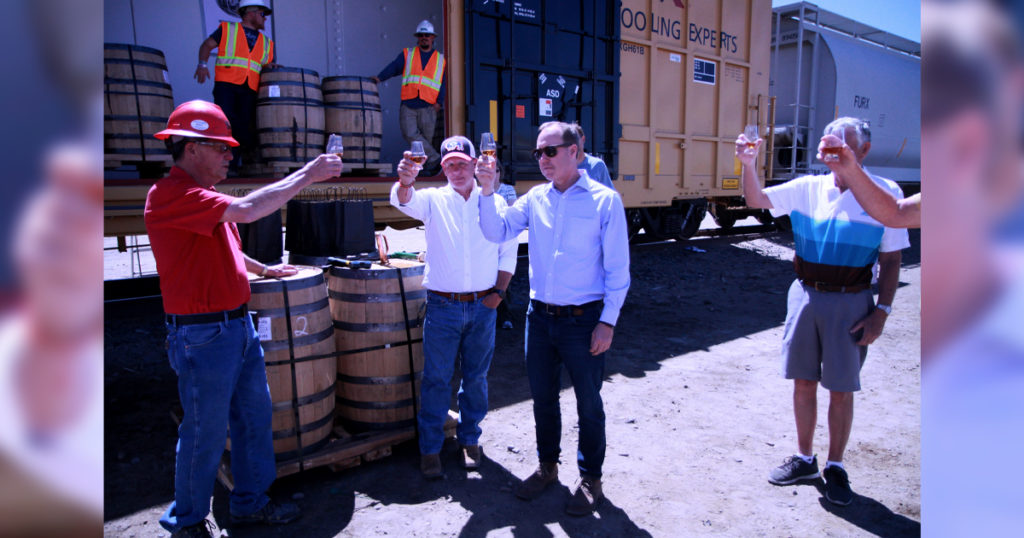 Eighty barrels of whiskey distilled in southern Indiana was moved to a warehouse in Chicago, IL and stored there for five years, according to Wason. Those barrel then made their way to Wyoming by railcar and dropped at the JBT freight yard on Blairtown Road. From there, crews reloaded the barrels onto new cars in the freight yard where they were transferred to Saratoga for one last round of aging.