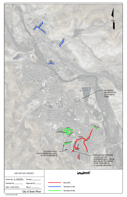 GREEN RIVER — Consolidated Paving is scheduled to begin chip seal work Tuesday, July 22, as part of the 2025 Sixth Penny funded Cape Seal Project. The work is expected to take approximately three days and will take place on multiple streets throughout the city.