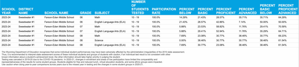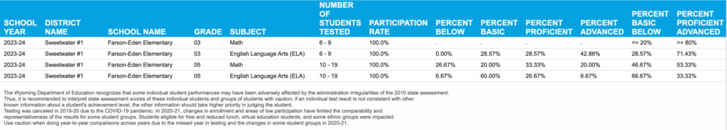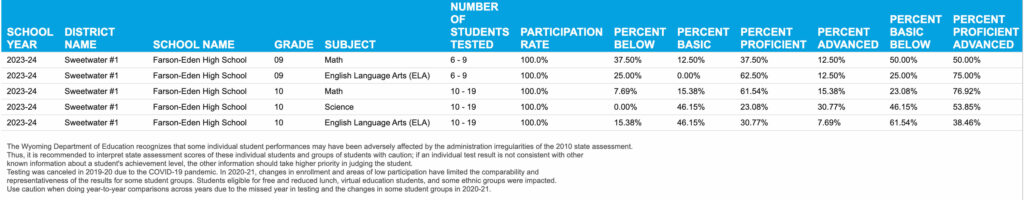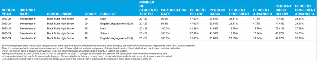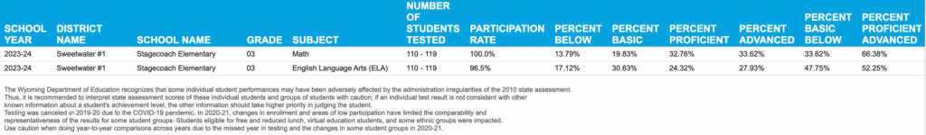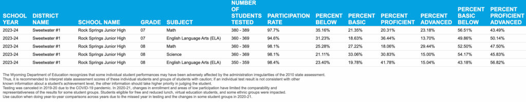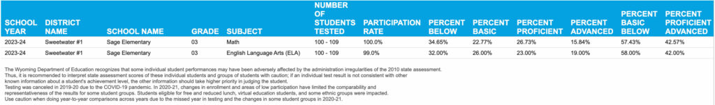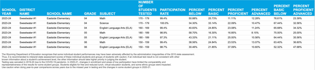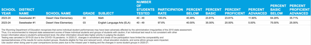 What follows are individual school WY-TOPP test results for SCSD No. 1, taken from the WDE’s website: