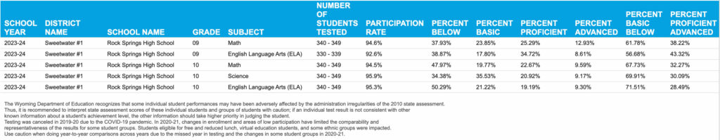 ROCK SPRINGS – Sweetwater County School District No. 1 is vowing to improve following the release of the WY-TOPP assessment data by the Wyoming Department of Education Wednesday, saying more support is already being given to schools.