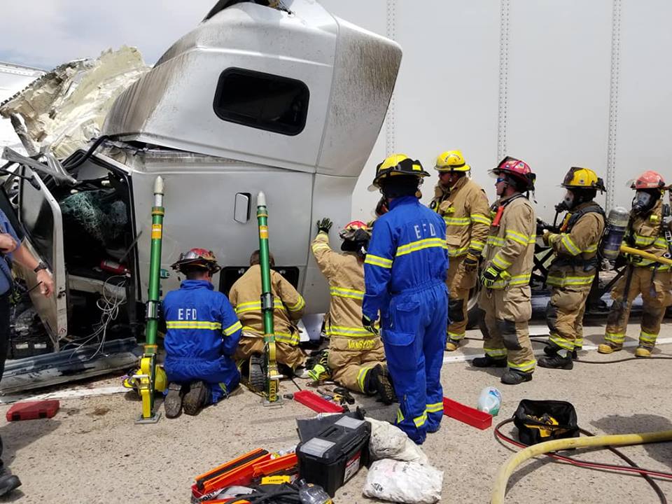 Emergency crews responded to a two-semi crash.