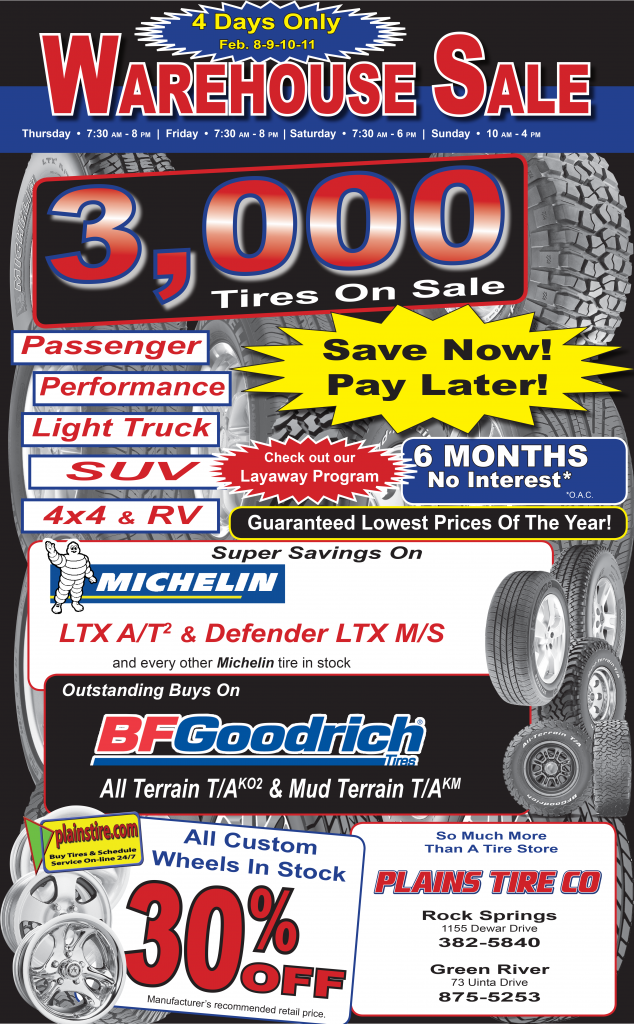 Now through Feb. 11, the Plains Tire Warehouse Sale has great deals on the tires you need!