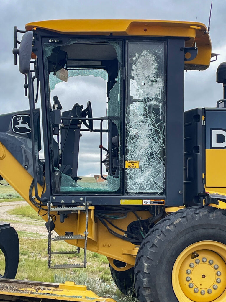 Further investigation revealed that the glass was shot out of the parked grader, along with additional damage. Replacing the windows and other repairs may take several weeks, which will result in delays to needed road improvements in the BLM Lander Field Office area.