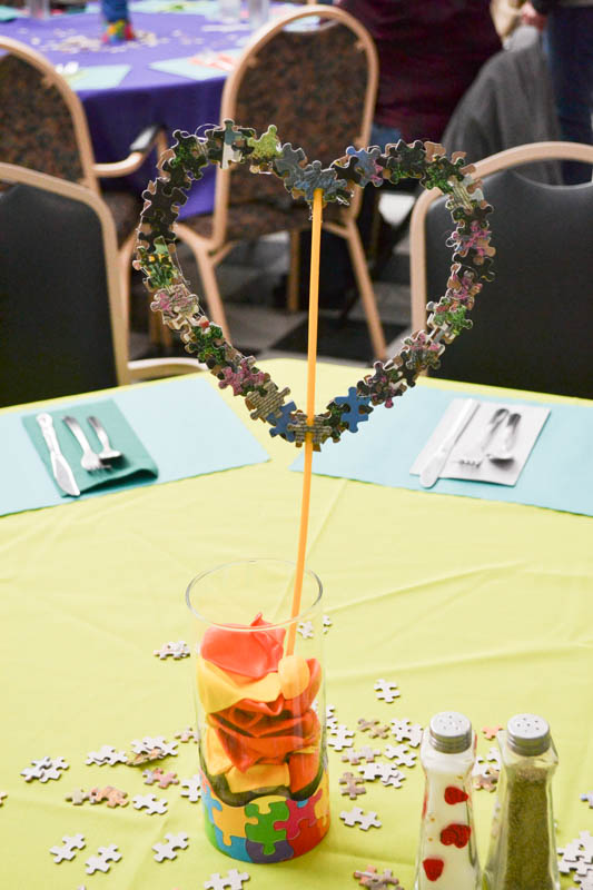 Each table was decorated with puzzle pieces and a heart centerpiece made of puzzle pieces.