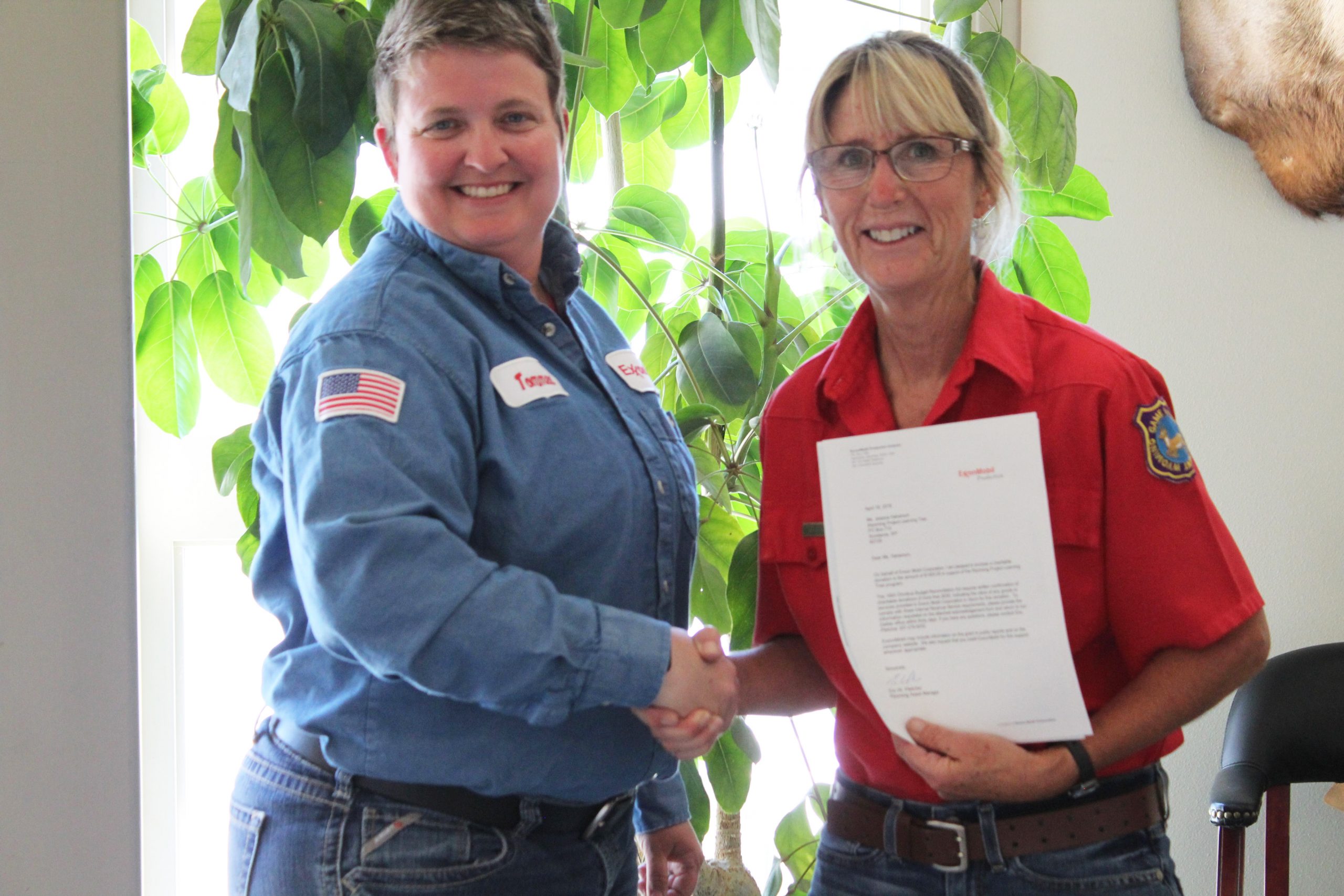 GREEN RIVER — On June 26, ExxonMobil representative Tommee Lambert, Operations Compliance Specialist, presented a $1,400 check to Wyoming Project Learning Tree (WY