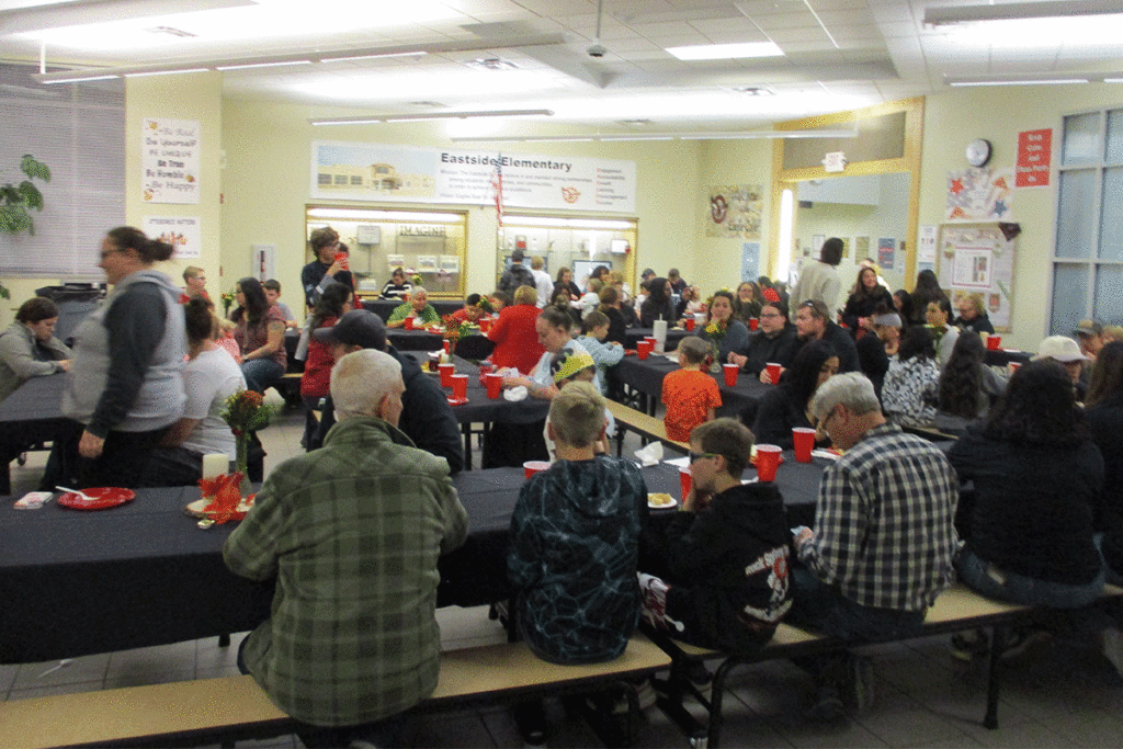 Eastside’s “Feast at East” drew a cafeteria overflow crowd of parents and interested community members wanting to know more about this student assignment completion tracking technology. This academic technology is available in 2023, but was likely not around yet when today’s parents and grandparents were in school. They may have heard of it only through Jetsons cartoons.