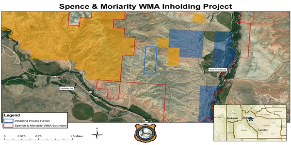 LANDER — The Wyoming Game and Fish Commission recently acquired more big game winter range near Dubois. This 120-acre property sits inside the Commission’s Spence and Moriarity Wildlife Management Area (WMA) and provides important wintering habitat for mule deer, elk, bighorn sheep, pronghorn and many more wildlife species.