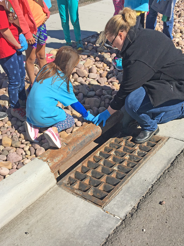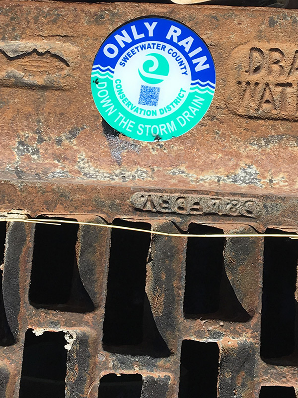 They are gluing down decals that say “only rain down the drain” near storm drains with the cooperation of Sweetwater County Conservation District.