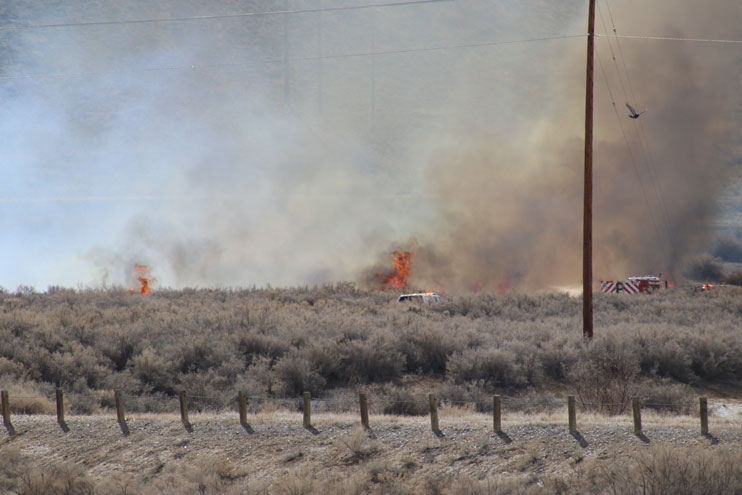 Upon arrival, it was observed that the fire was in heavy greasewoods with winds blowing 15 to 20 mph, shifting directions. Fire crews were able to control the fire and had it fully contained by 8:30 p.m.