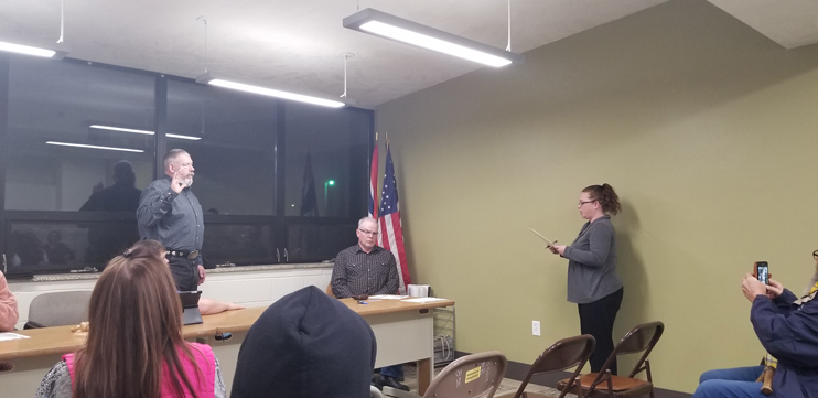 Newly elected mayor Bradly McCollum, and newly elected councilors John Dunivin, who was elected to the city council by write-in vote, and Karen Cukale took their oath of office Thursday night.