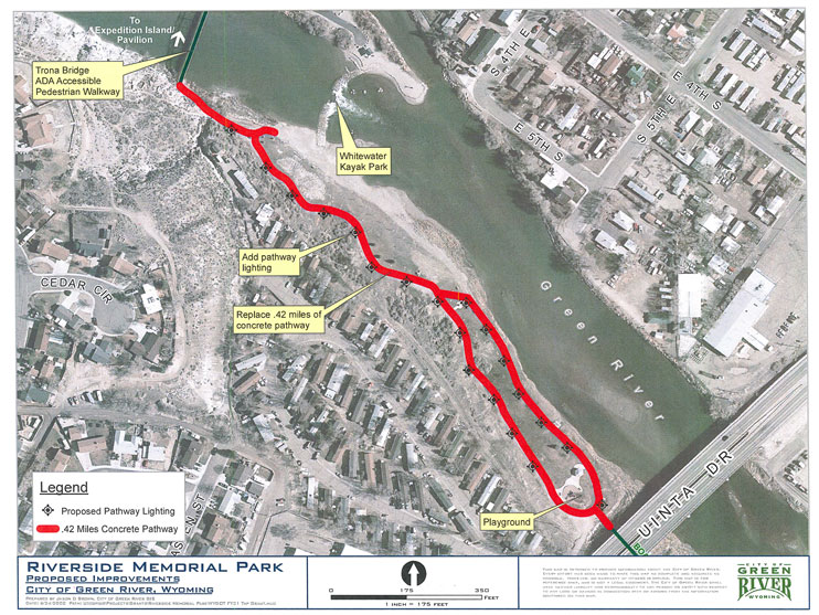 GREEN RIVER — The City of Green River will go out for a federal grant through the Wyoming Department of Transportation (WYDOT) to replace the concrete walking path at Riverside Memorial Park and add pathway lighting.