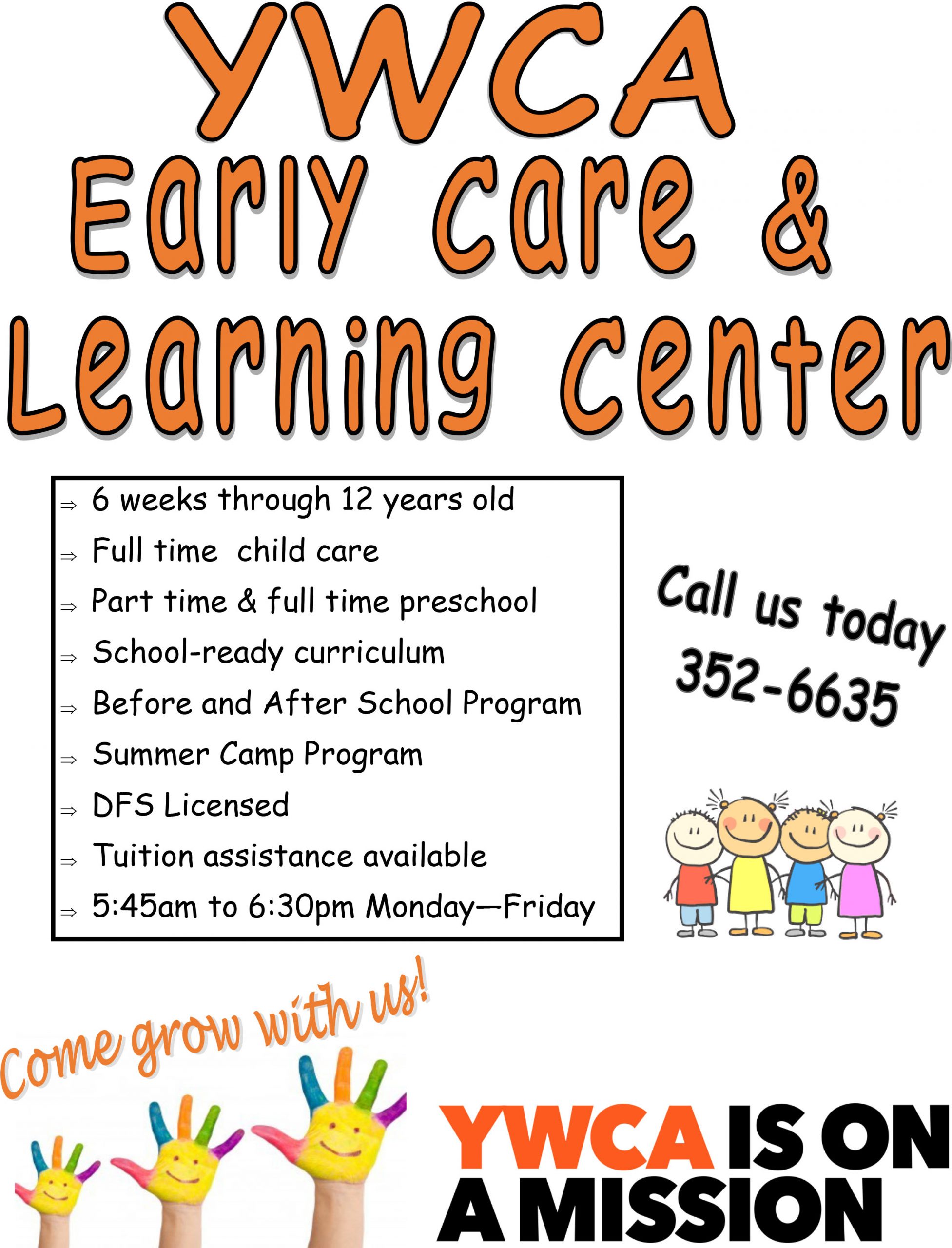YWCA Early Care & Learning Center provides quality, dependable childcare from birth to age 12 and provides a sliding fee scale to families whose income qualifies.