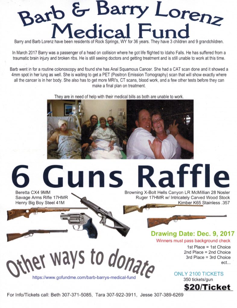 ROCK SPRINGS– H&N Gold Field Services in Rock Springs is presenting a gun raffle to raise medical funds for coworker Barry Lorenz and his wife Barb as they go through some tough medical battles.