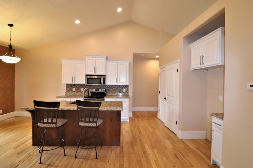 - Kitchen with granite counter tops, stainless steel appliances, large pantry and kitchen island.