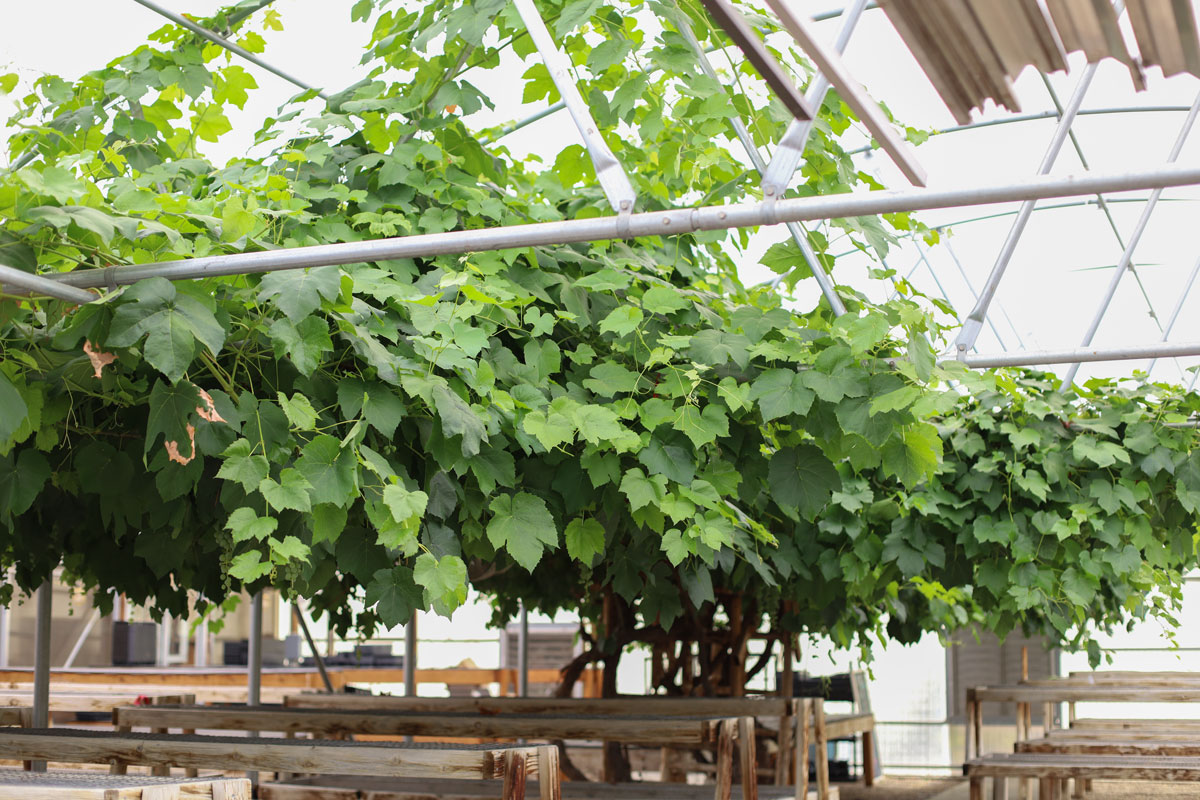 Customers often stop by to check out the enourmous grape vine…