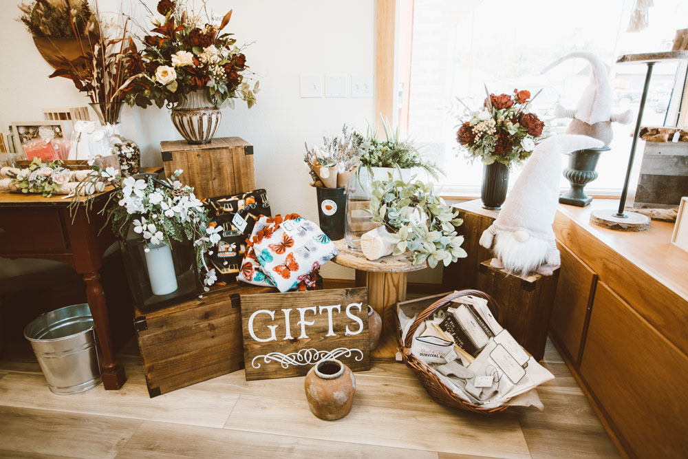 Tracy remembers making her first floral arrangement when she was around 10-years-old. She found a log from a creek and added dried flowers, grass, moss, etc.