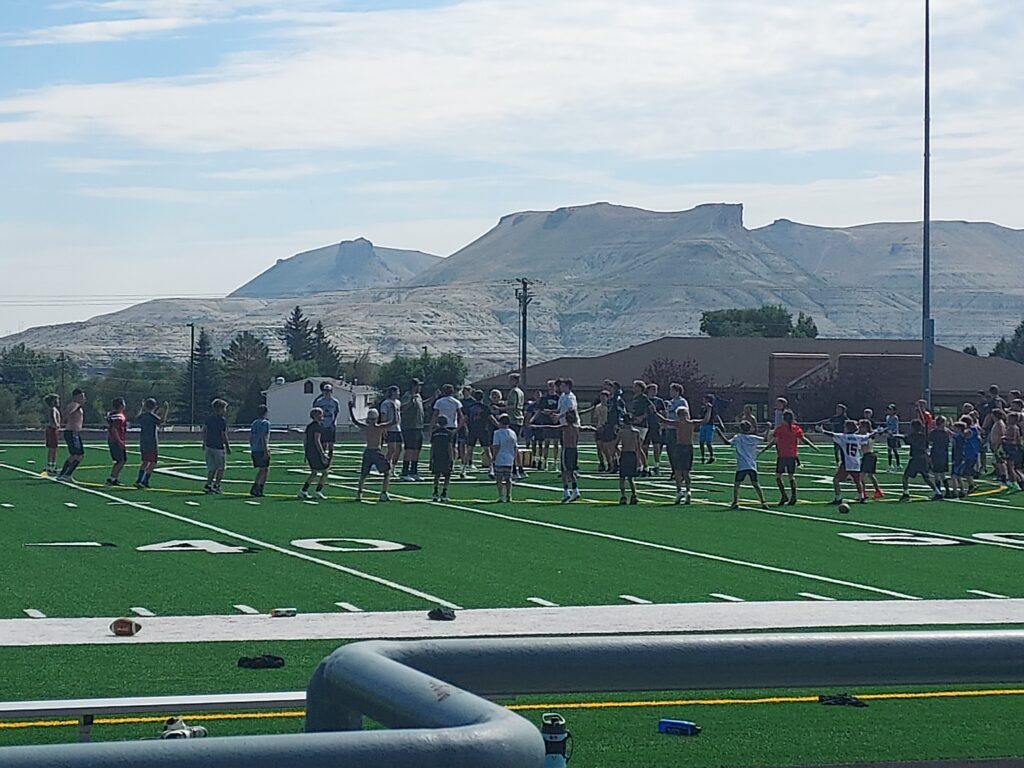 This week, GRHS football held a football summer camp for the youth at Wolves Stadium, similar to the ones he went to as a kid when his father, Jamie Christensen, was the head coach for Rock Springs High School. His father Jamie coached Rock Springs from 1999 to the 2003 season. During this time, he had a 35-11 record with 2 back-to-back undefeated state championship winning seasons, which included a 22-game win streak, a school record to this day.