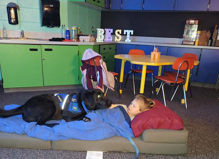 As Buddy’s handler, the best part of my job is watching kids utilize Buddy to calm themselves down and face their challenges.