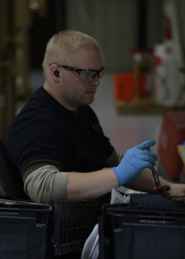 Inside the bright, epoxy-floored workspace, the process is a blend of precision engineering and hands-on craftsmanship. Operators run banks of CNC machines, each cutting slides, frames, and trunnions to tight tolerances. Floor Manager Stetson Roundy said parts are measured multiple times a shift with digital gauges and optical comparators before moving on to deburring, heat treating and final assembly.
