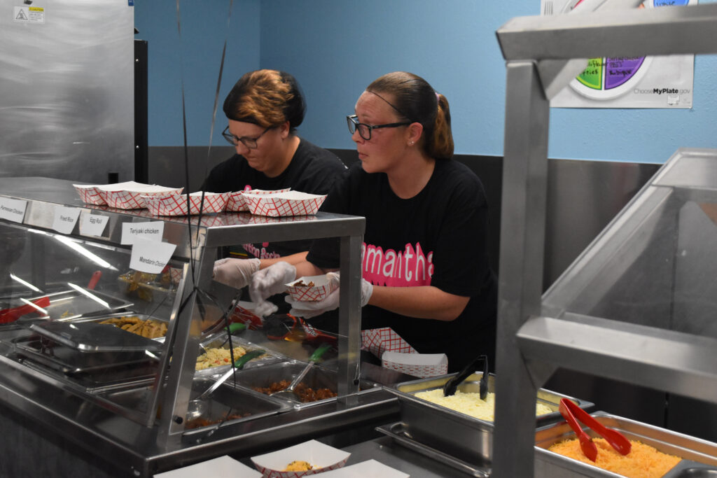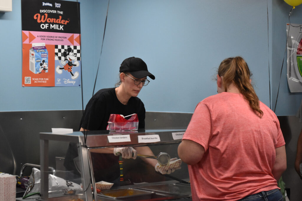 The nutrition services staff celebrated their new kitchen by inviting the community to tour it, and then try samples of food that they will cook and serve to students throughout the year. Food included everything from breakfast burritos to walking tacos to teriyaki chicken and pigs in a blanket.