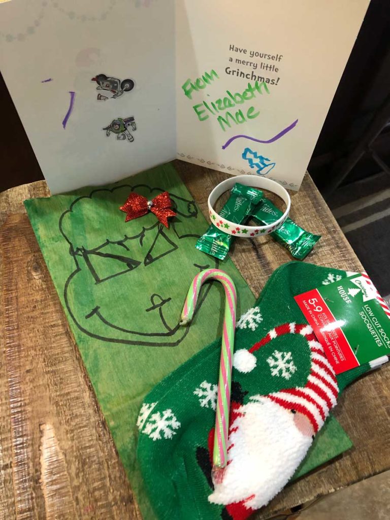 While shopping for goodies for the Grinch bags, a woman asked Kayla what they were making, and that’s when Kayla realized the true importance of what her family was doing.