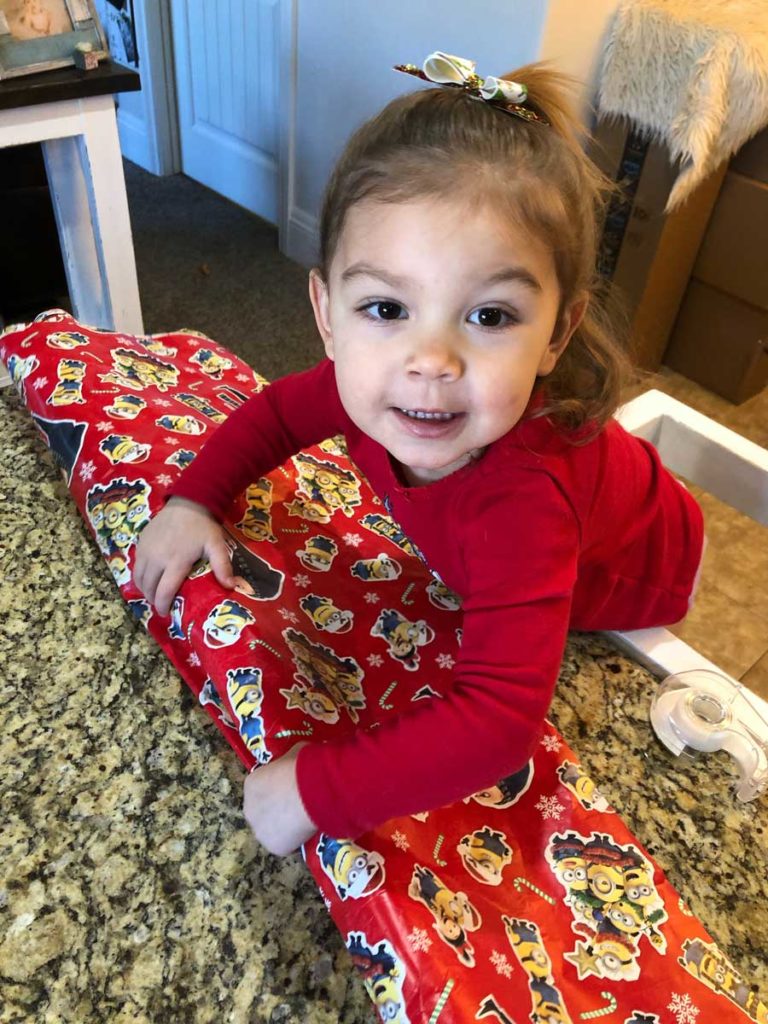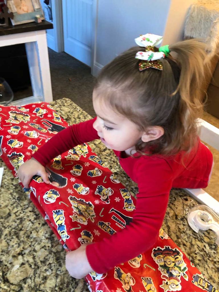 Elizabeth had an especially great time this year wrapping the items to gift. She even wrapped the card she made.