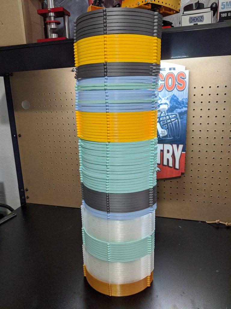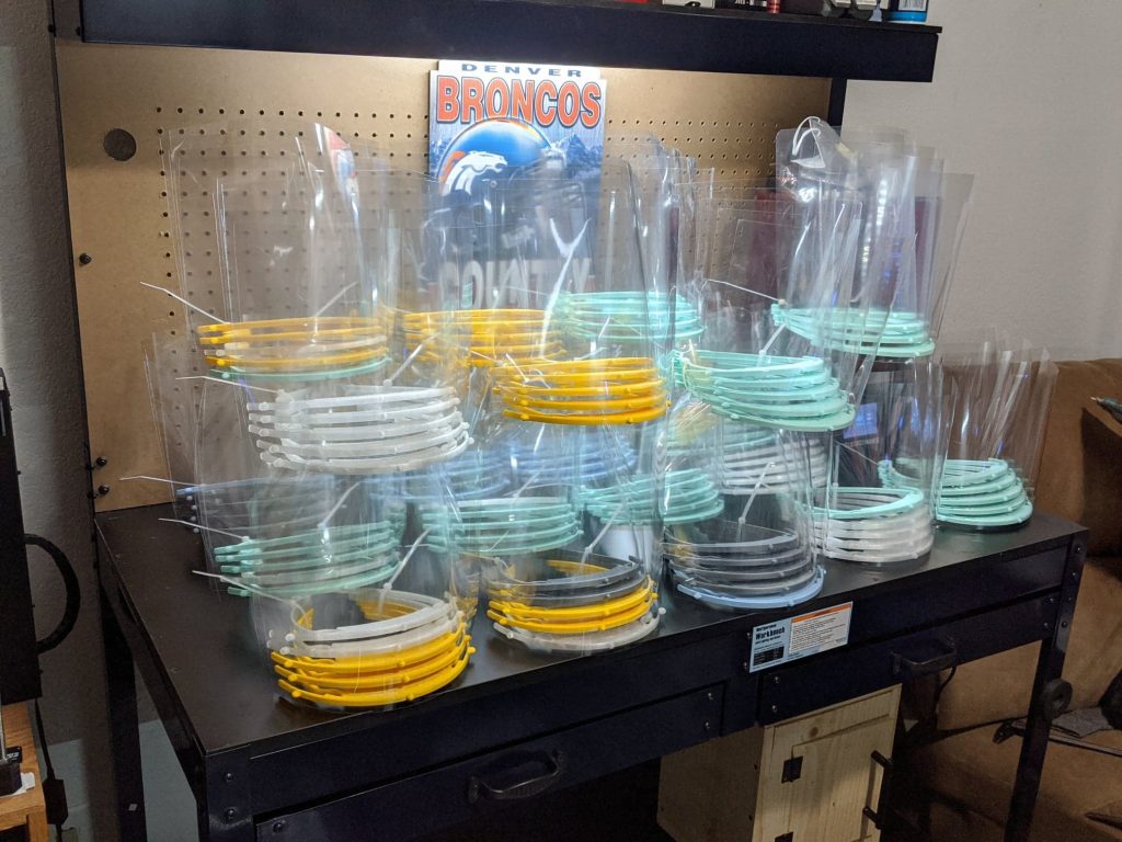 Printing the face shields was no quick task. Pendleton said that he printed the shields in stacks of 10, with each stack taking anywhere from 18 to 25 hours to complete.