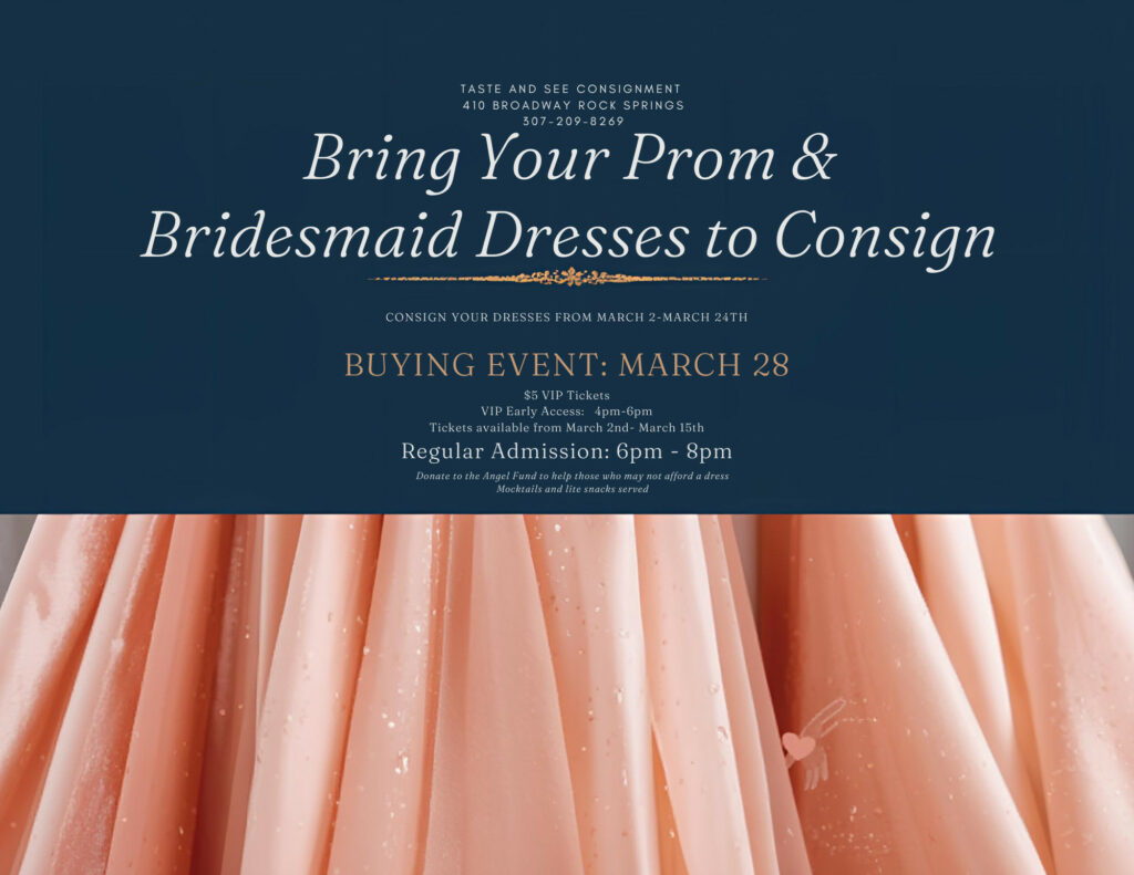 Sweetwater County is invited to consign gently loved prom dresses, creating an opportunity for dresses to have a second life while helping students find something special for prom. Consigned dresses will be sold with a 50/50 split.